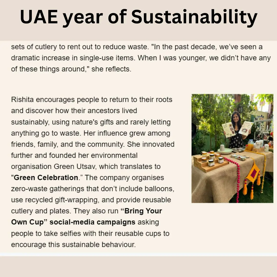 Green Utsav is a purpose-first sustainability design and consulting firm dedicated to enabling zero-waste, conscious living through strategic programs, events and education. Based in the UAE and India, we work across schools, corporates, and communities.